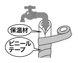 1.露出している水道管や蛇口に、保温材や布などを巻き、ビニールテープやガムテープを巻きつけて防寒してください。